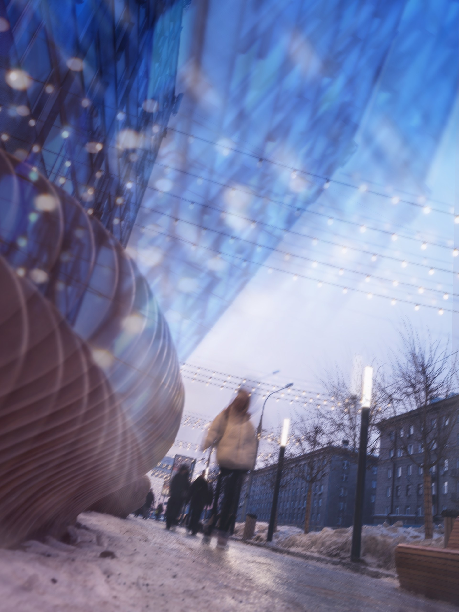 Зима в Новосибирске — это всегда испытание. В феврале 2026 года город превратился в один огромный каток. Гололед стал тотальным явлением, объединившим всех жителей в едином, не всегда добровольном, танце на льду. По статистике, этой зимой каждый новосибирец либо упал, либо наблюдал падение другого человека, либо изобразил попытку удержать равновесие. Этот проект родился из точки физического падения. Лежа на льду после очередного фиаско, я увидел город иначе — из перспективы человека, только что проигравшего гололеду и гравитации. Боль стала той ценой, которую пришлось заплатить за входной билет в этот ракурс.«Ледяной городок Н-ск» — это серия снимков, сделанных с уровня земли, с намеренно «заваленным» горизонтом. Это попытка исследовать городское пространство через состояние уязвимости. Вертикаль, привычная для человека, рушится, как и наше равновесие. Знакомые здания, остановки и деревья предстают в неожиданных ракурсах, превращая привычные пейзажи в зыбкую, скользкую реальность. Лед здесь выступает не просто как природное явление, а как главный художник и разрушитель порядка, заставляющий зрителя вместе со мной испытать то самое чувство потери опоры под ногами. В конце концов, чтобы увидеть город по-новому, иногда достаточно просто в него неловко упасть. P.S. Во время съемки ни один прохожий не пострадал. Автор — да, но это уже часть искусства.